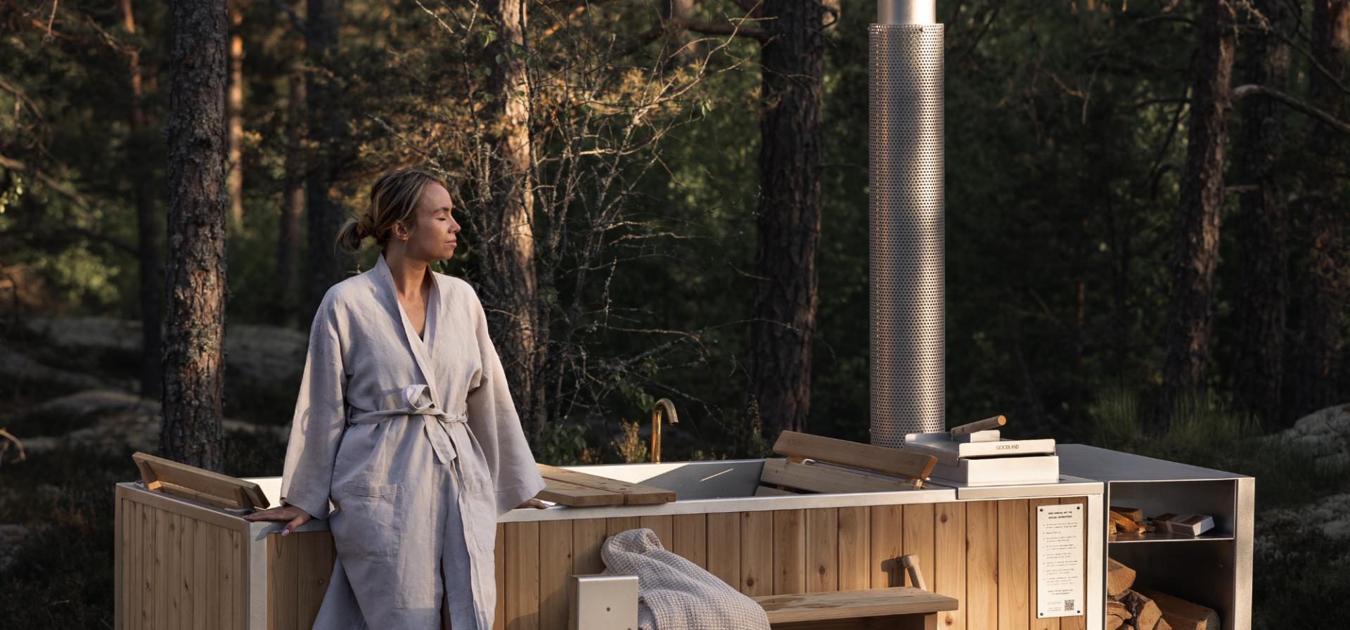 New luxury villa secluded in the forest under an hour from Helsinki; 3 bedrooms, open kitchen-living room & fireplace. Separate sauna building with wood-burning sauna & outdoor hot tub facing sunset.